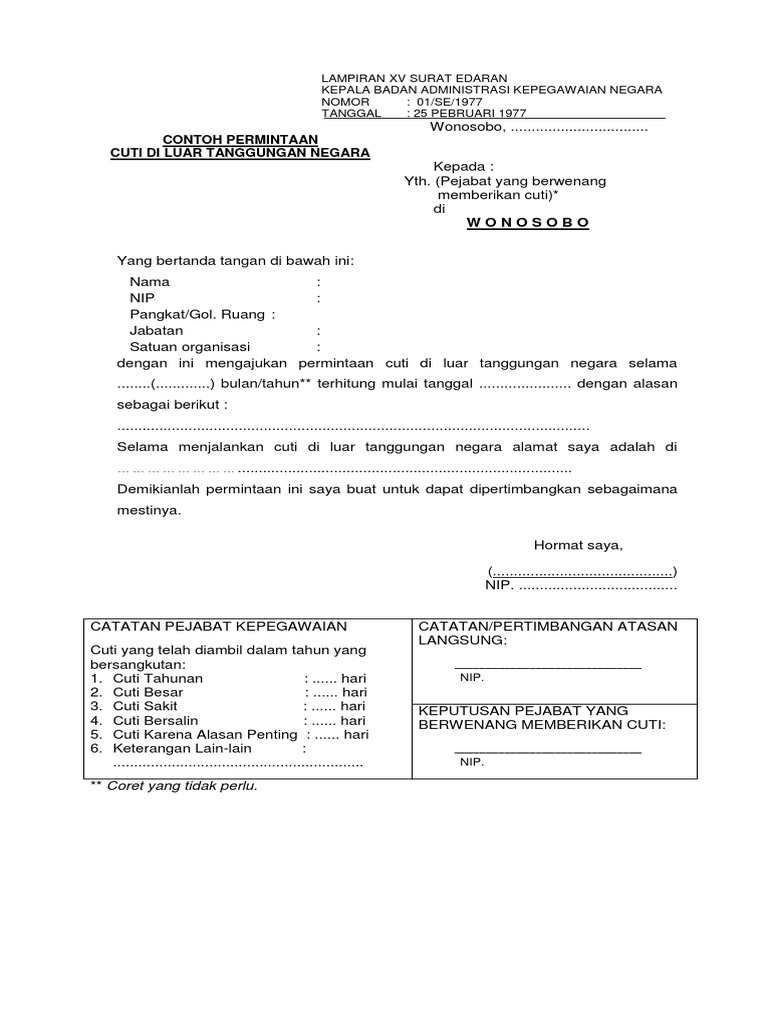 Blangko blangko cuti pns contoh surat cuti pegawai negeri sipil surat permintaan blangko blangko cuti pns contoh surat izin cuti sakit docx size 13 kb semua
