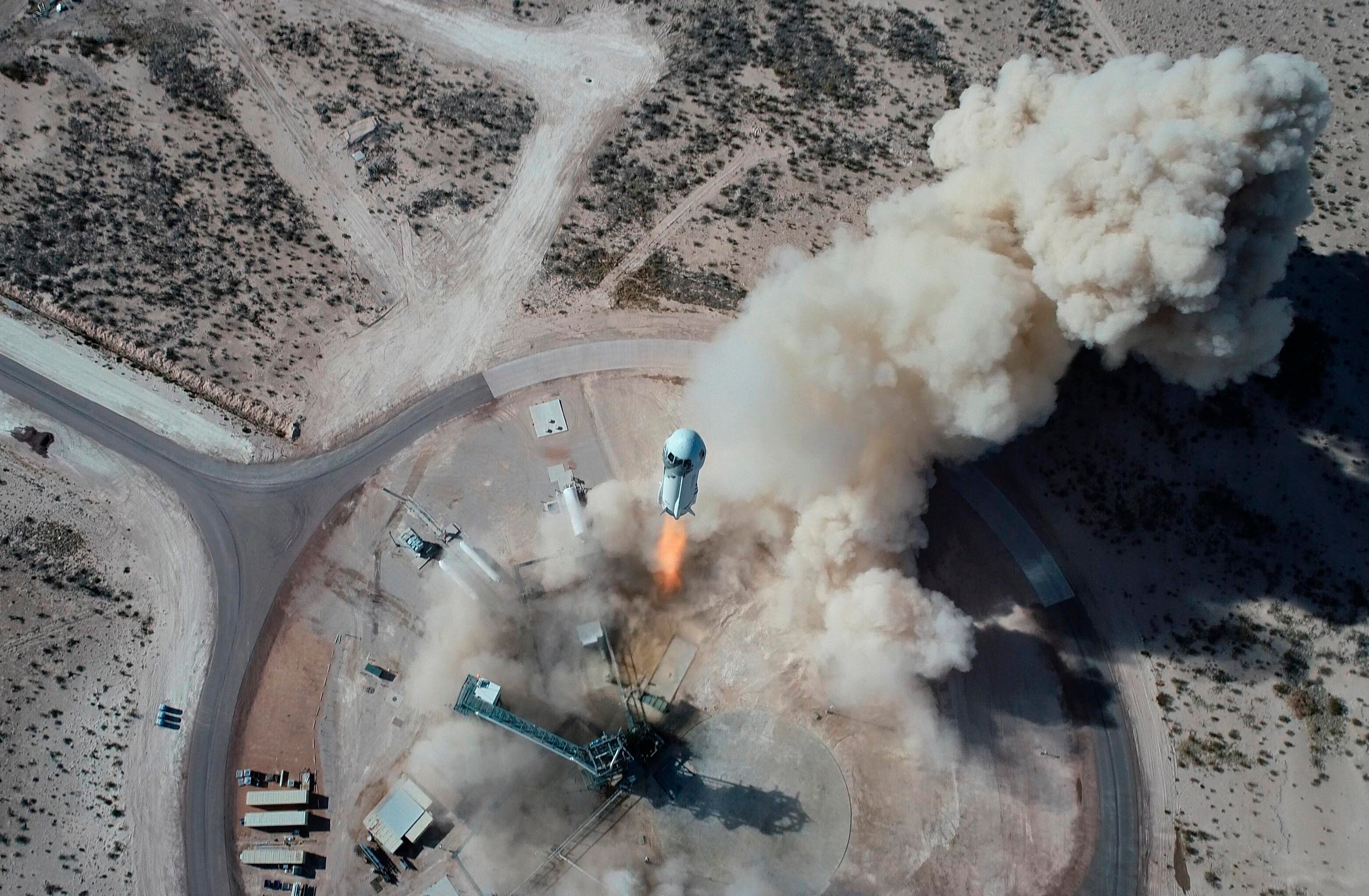 Tuesday's flight launched a few minutes later than planned at at jeff bezos space. The launch marks blue origin's entrance into the market of private spaceflight, joining richard branson's virgin galactic and elon musk's spacex.